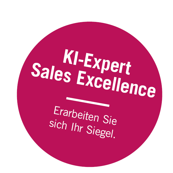 Die Teilnehmenden haben die Möglichkeit, im Anschluss an die Expert Class im Rahmen eines kurzen Online-Tests ihre erworbenen Kenntnisse zu bestätigen und sich mit dem Siegel „KI-Expert Sales Excellence“ auszuweisen. Das virtuelle Siegel ist ein fundierter Kompetenzausweis im Umgang mit Künstlicher Intelligenz im Vertrieb.